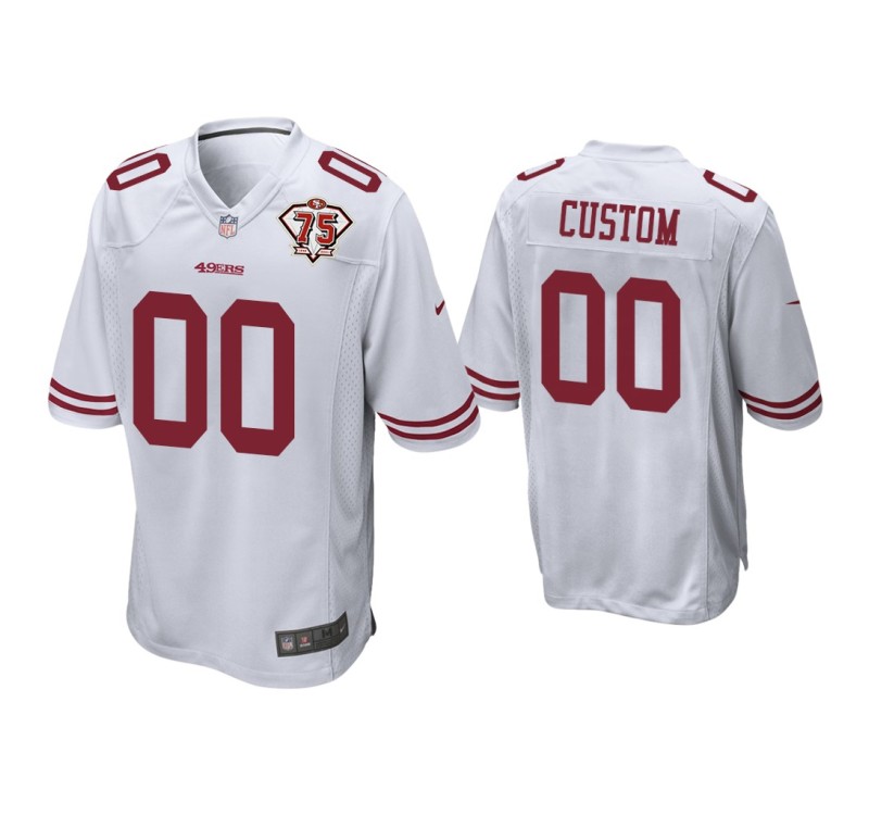 Men San Francisco 49ers #00 Custom White 75th Anniversary Patch Game Jersey
