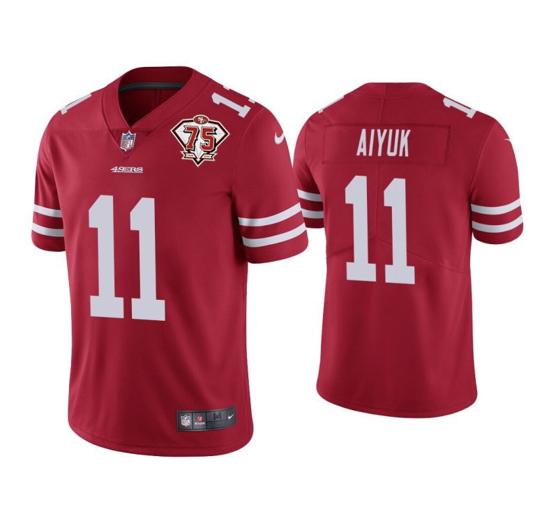 Men San Francisco 49ers #11 Brandon Aiyuk Scarlet 75th Anniversary Patch Limited Jersey