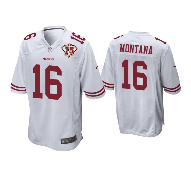 Men San Francisco 49ers #16 Joe Montana White 75th Anniversary Patch Game Jersey