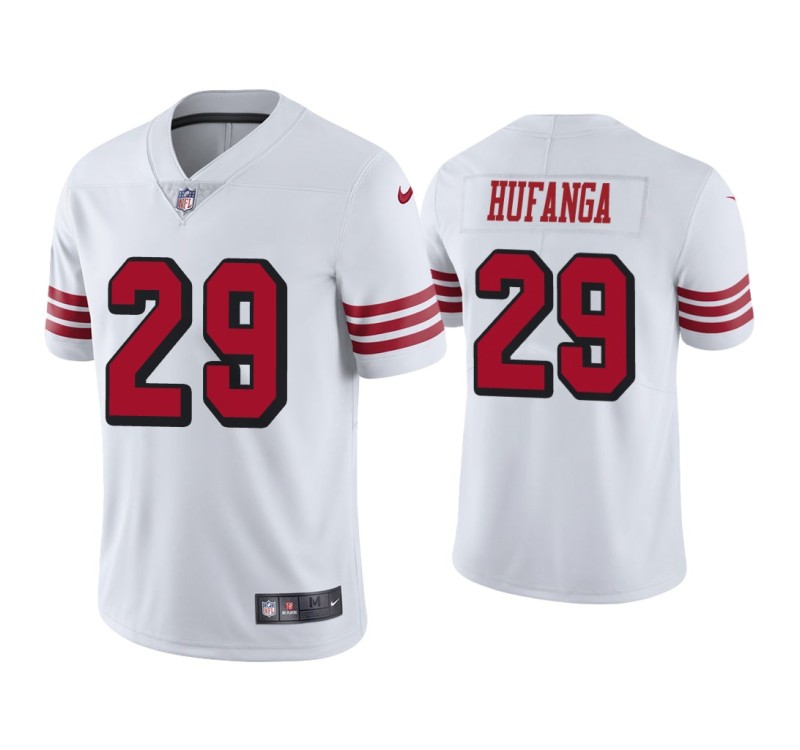 Look and feel like a big leaguer when you wear the cheap Men San Francisco 49ers #29 Color Rush Limited Talanoa Hufanga White Jersey. It features a comfortable polyester design with quality San Francisco 49ers and Talanoa Hufanga embroidered graphics that will quickly make this Talanoa Hufanga Jersey one of your favorites.