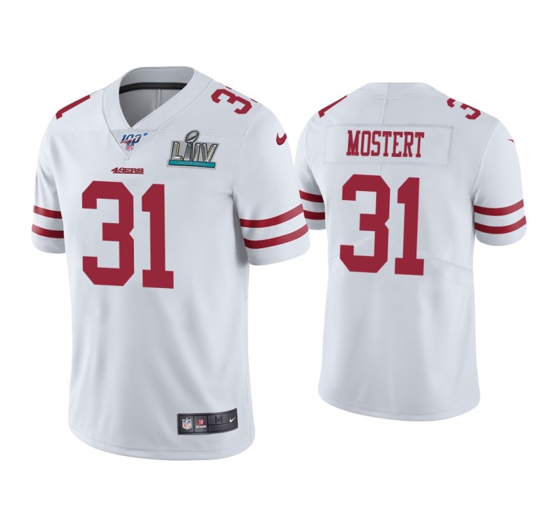 Men San Francisco 49ers #31 Raheem Mostert Super Bowl LIV White Vapor Limited Jersey