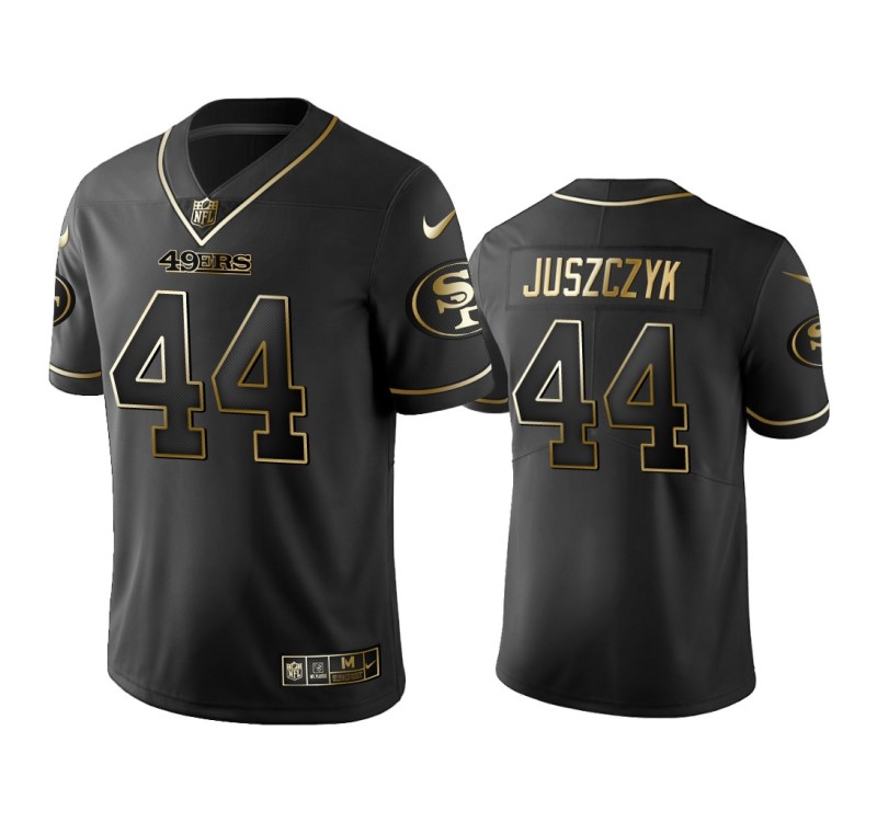 Every fan has various pieces of fan apparel that are a little different from the standard clothing that makes up most of their wardrobe or collection, and this Men San Francisco 49ers #44 2019 Golden Edition Vapor Untouchable Limited Kyle Juszczyk Black Jersey will definitely stand out from the others. The Gold Vapor Untouchable Limited jersey design includes a golden team graphics screen-printed on the front and on both sleeves, the golden player's name and number on the the front and back.