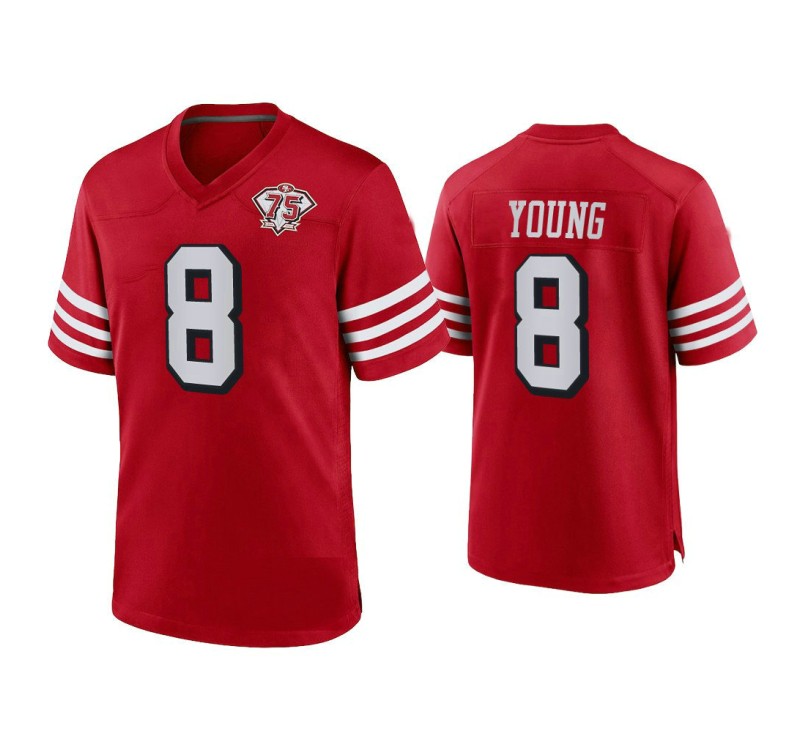 Men San Francisco 49ers #8 Steve Young Scarlet 75th Anniversary Game Jersey