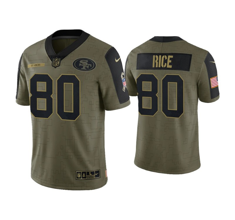 Men San Francisco 49ers #80 Jerry Rice Olive 2021 Salute To Service Limited Jersey