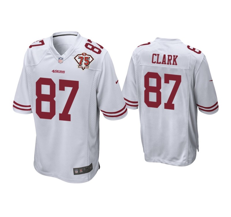 Men San Francisco 49ers #87 Dwight Clark White 75th Anniversary Patch Game Jersey