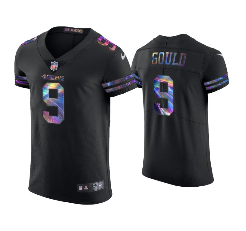 Men San Francisco 49ers #9 Robbie Gould Black Golden Edition Holographic Jersey