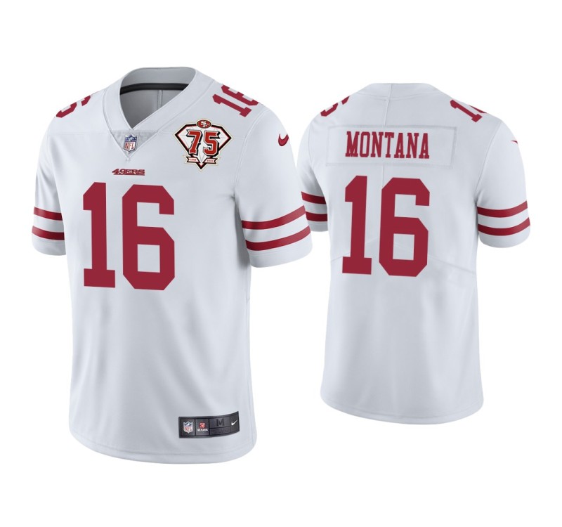 Men San Francisco 49ers #16 Joe Montana White 75th Anniversary Patch Limited Jersey