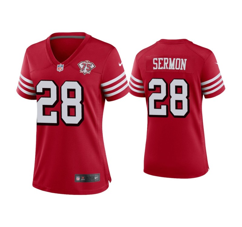 Women San Francisco 49ers #28 Trey Sermon Scarlet 75th Anniversary Jersey