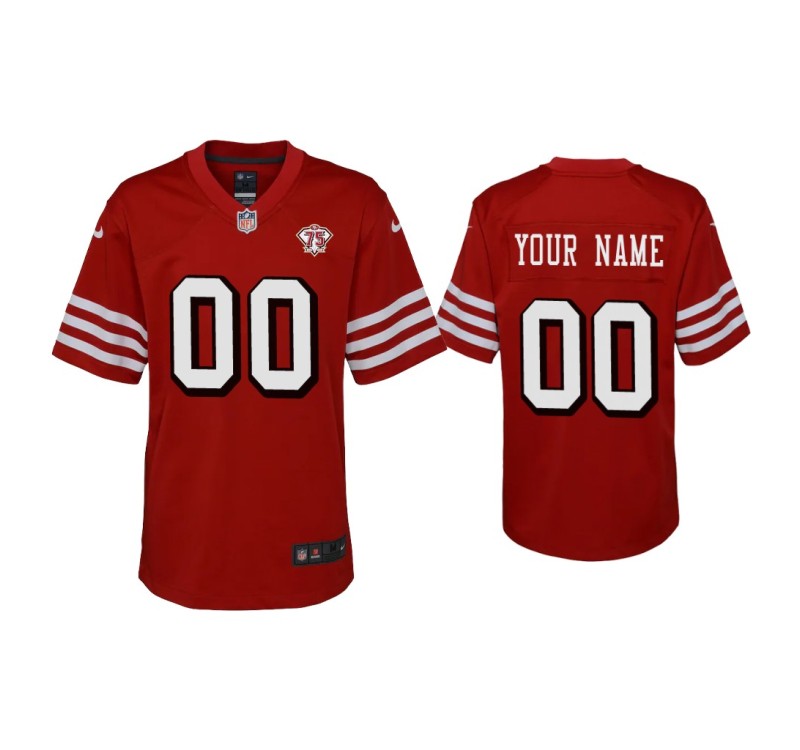 Youth San Francisco 49ers #00 Custom Scarlet 75th Anniversary Jersey